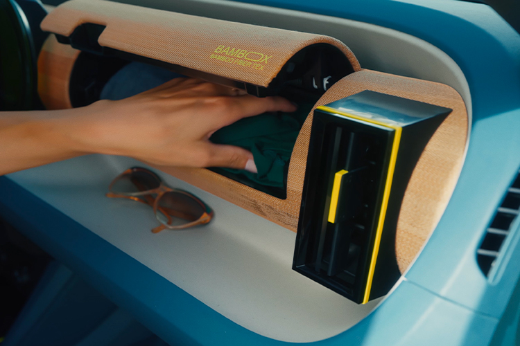 Instrumentbordet er helt sit eget med sjove detaljer og udført i bambus-look. Her finder du bl.a. det integrerede, fuldt digitale navigationssystem.